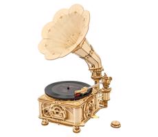 RoboTime - 3D drewniane puzzle mechaniczne Gramofon (napęd ręczny)